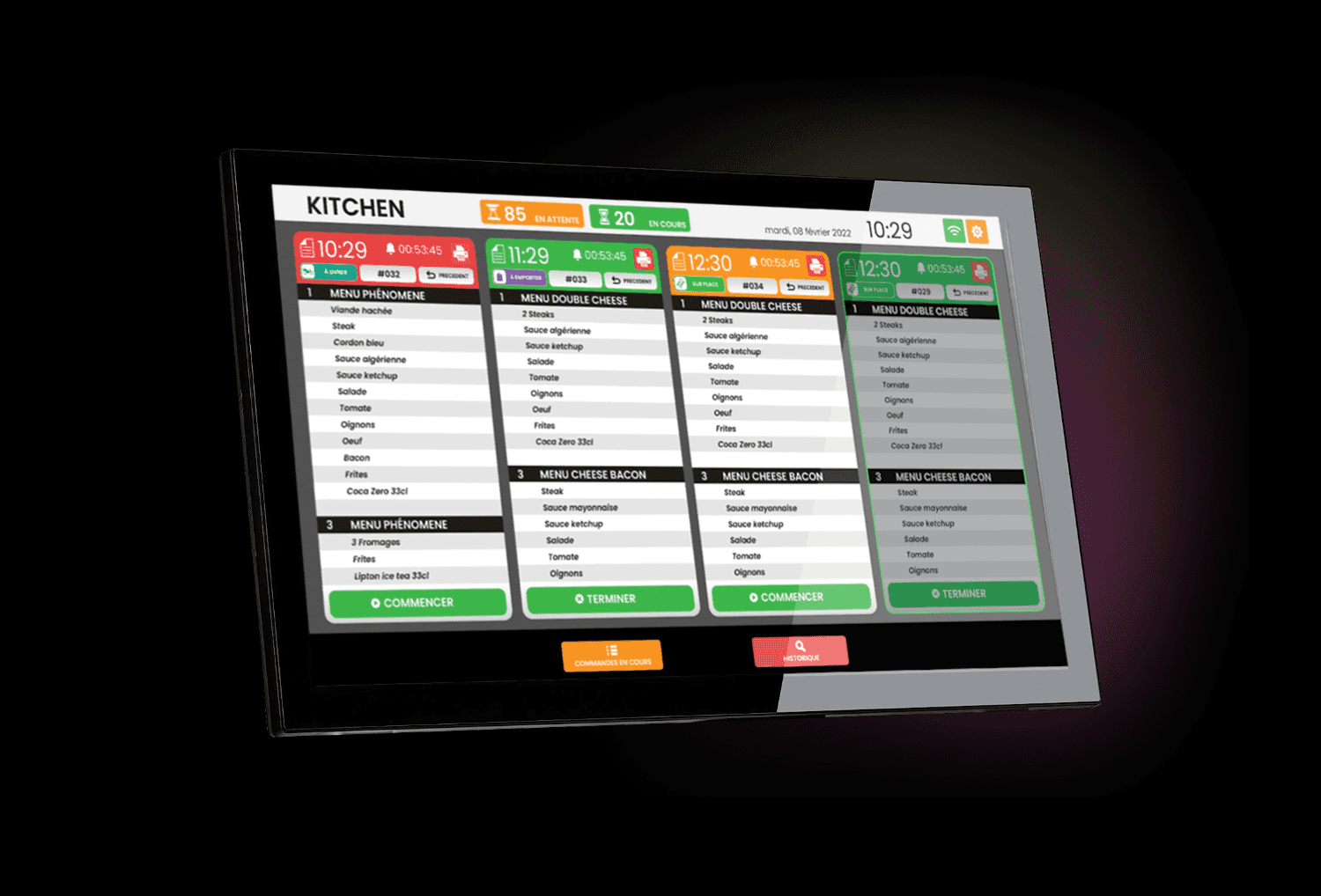 Les écrans KDS tactiles et intuitifs permettent à vos équipes de traiter les commandes et de lancer la production rapidement.